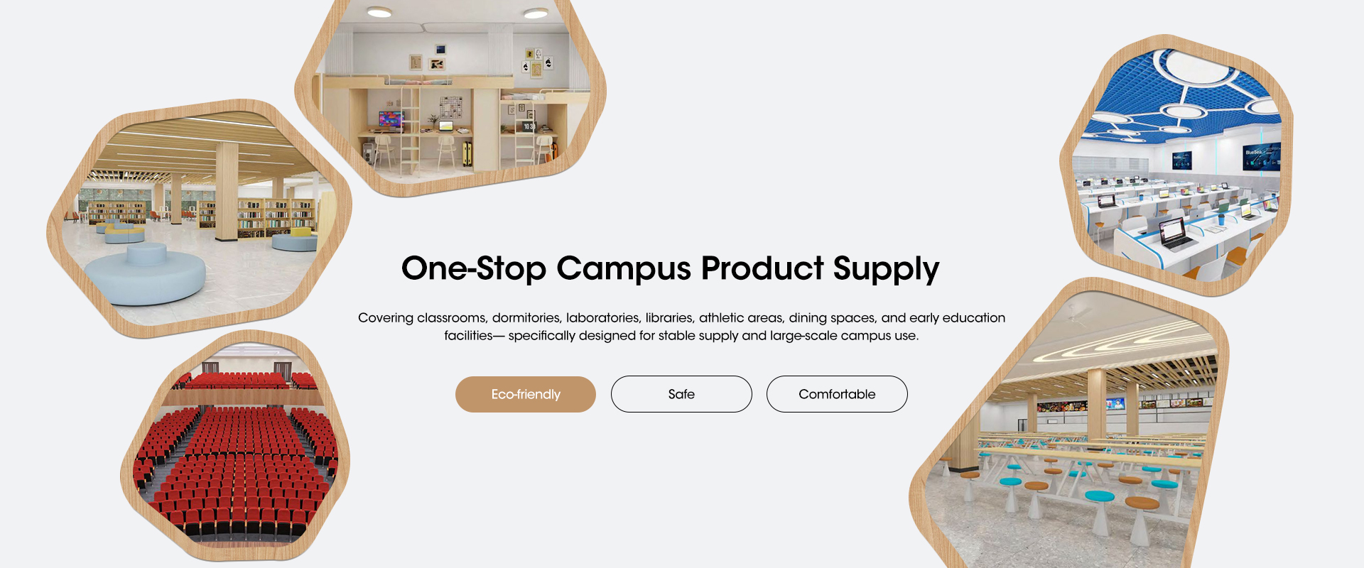 What types of products do you supply?We provide a full range of campus equipment, including classroom desks and chairs, dormitory furniture, laboratory equipment, early childhood education furniture, dining tables and chairs, library equipment, and school sports facilities.